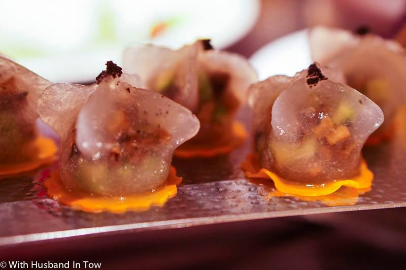 One of the more unique presentations included a deceptively simple double boiled pine mushroom soup with pork and chicken. Served in a tea pot, over a tea light candle, the soup came with a small Chinese style tea cup. I say deceptively simple as the soup was nothing more than a chicken broth, but packed such rich and condensed flavors.